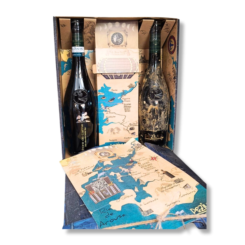 Descubre el lujo y la exclusividad del Flore de Carme Reserva Doble Lías con este estuche único, que incluye dos botellas de la misma añada, una crianza en bodega, y otra a 20 metros de profundidad. Este vino excepcional ha sido madurado en condiciones únicas, donde las corrientes marinas, la temperatura constante y la influencia de las mareas lunares le han otorgado una complejidad y carácter incomparables. Una experiencia sensorial exclusiva, ideal para los amantes del vino que buscan algo realmente diferente y fuera de lo común.
